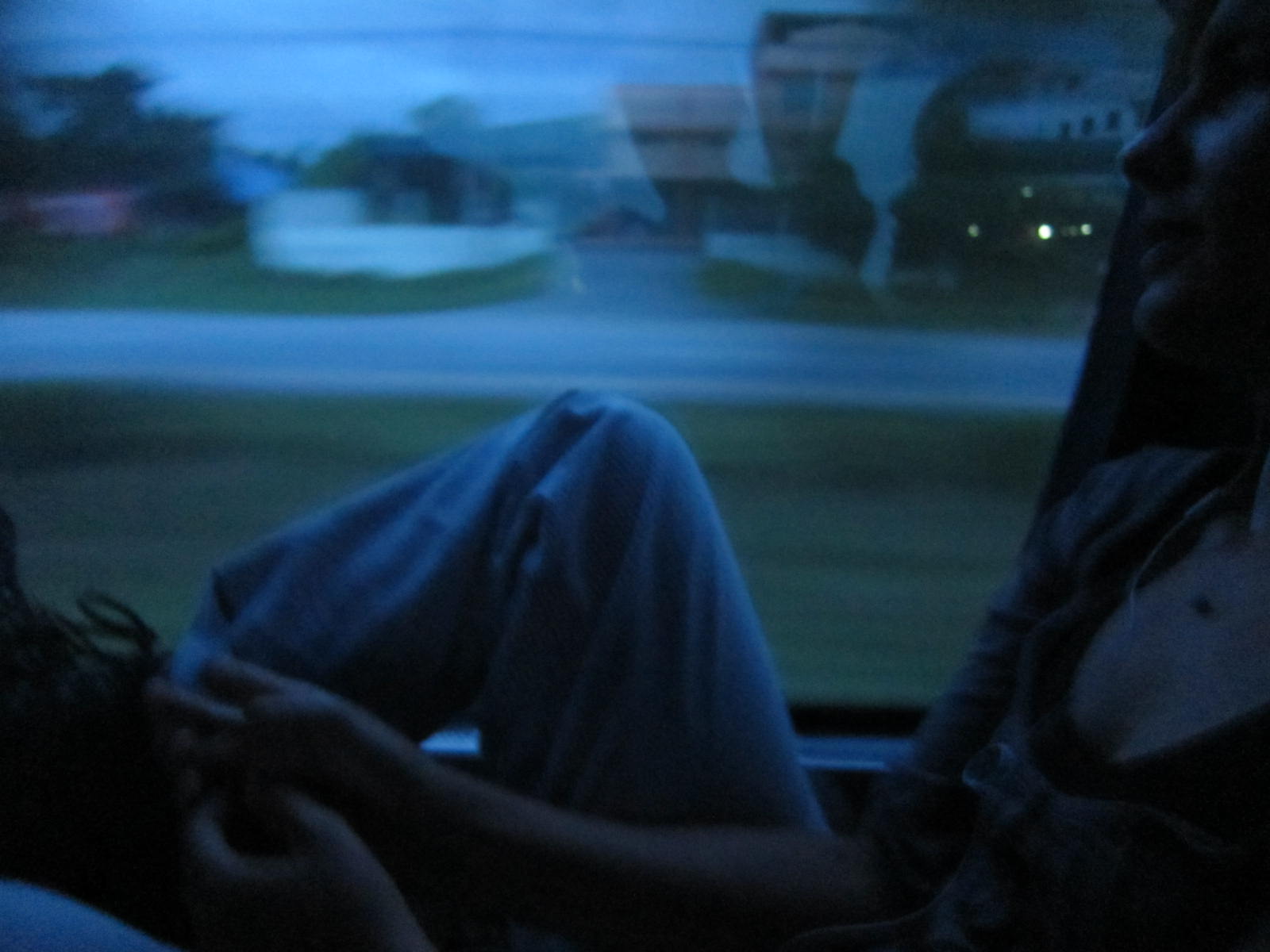 the last morning in don dhet, we woke up at sunrise to take the walk up to the bakery to get some goods for the passage into cambodia. the row boat took me through the waters to the mainland, then to catch the 12 hour bus ride. the first 8 hours were luxury equipped with ac, dvd and plush seats. the border crossing was quite immediate upon boarding the bus - it took us to Stung Treng and then to Kampong Thon for formal crossover. i think this was the least visually intriguing border crossing but it did have it's moments. we got handed h1n1 pamphlets by the health inspector as well as laser temperature readings to ensure we were not coming into cambodia's shadows. the last 4 hours of the ride was the best by far - we were they only foreigners on board amongst a full busload of cambodians; all with dazzling eyes and curious, sheepish smiles peering at us, handing us exotic fruits and drinks to try to keep us nourished. the people struck me straight away - all very sweet and open and warm. passing the countryside, i could see the houses were much larger in footprint than laos dwellings and better constructed with wood siding and tiled roofs. the palms ascended much further into the skies and that first night descending on us in cambodia offered a sunset vivid in color... shattering against the never ending rice fields.